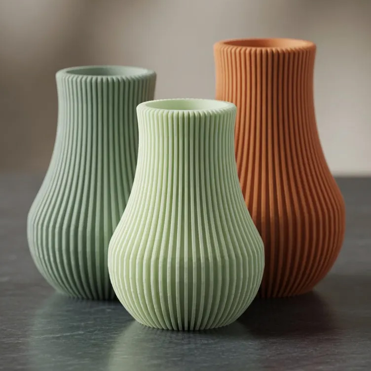优雅且现代的罗纹花瓶,带有优美的弧形轮廓。这款3D打印模型具有细腻的垂直肋条,营造出引人注目的纹理和光影交织。 花瓶造型经典又现代,灵感来自沙漏——底部和顶部更宽,中间略带收窄。简洁、极简的设计使其成为独立装饰品或实用花瓶的理想选择。